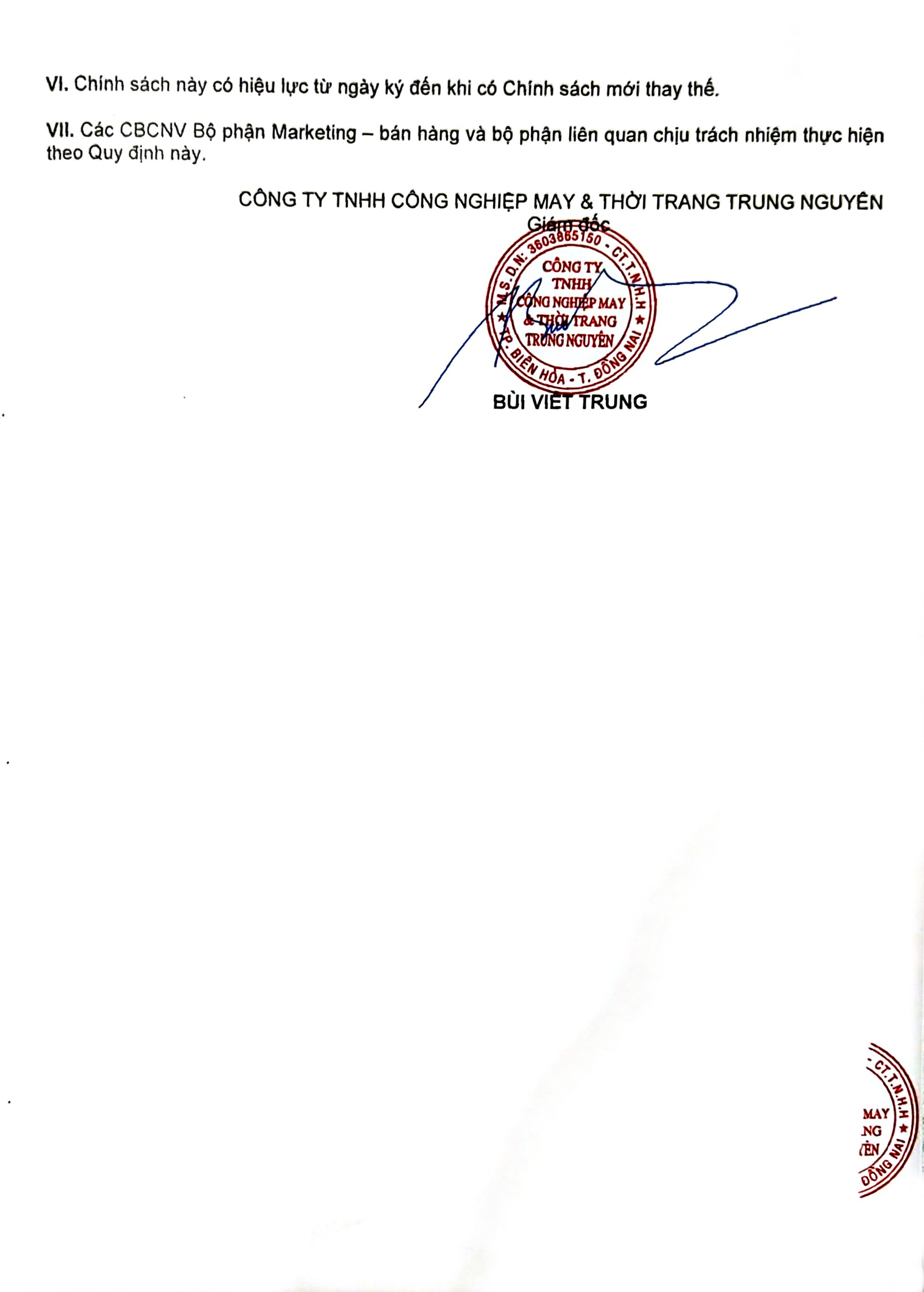 VI. Chính sách này có hiệu lực từ ngày ký đến khi có Chính sách mới thay thế.