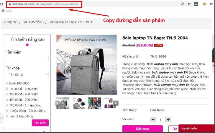 B1: Tạo link giới thiệu rút gọn cho từng sản phẩm(hoặc danh mục sản phẩm) bằng cách copy đường dẫn của sản phẩm đó (hoặc đường dẫn danh mục sản phẩm đó):