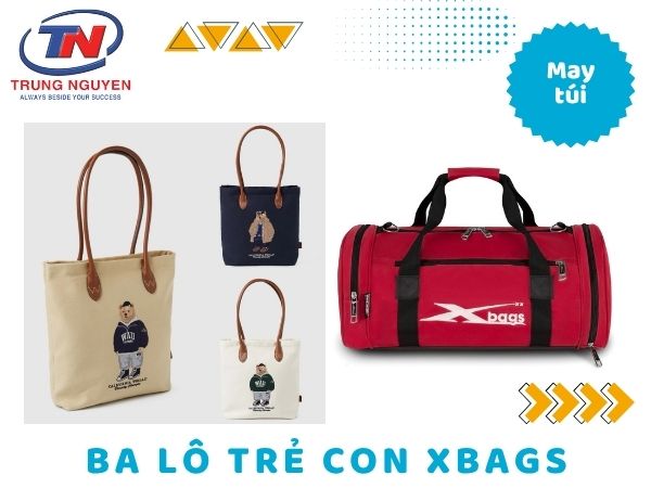 Ngoài ra, Xbags cũng nhận may gia công balo các loại (balo đi học, balo laptop, balo du lịch, balo quà tặng doanh nghiệp, balo quảng cáo sự kiện, balo VNXK,...). Tất cả các mẫu đều có thể gia công theo thiết kế riêng, hỗ trợ logo thương hiệu và tùy chọn chất liệu, màu sắc theo ý tưởng của khách hàng.