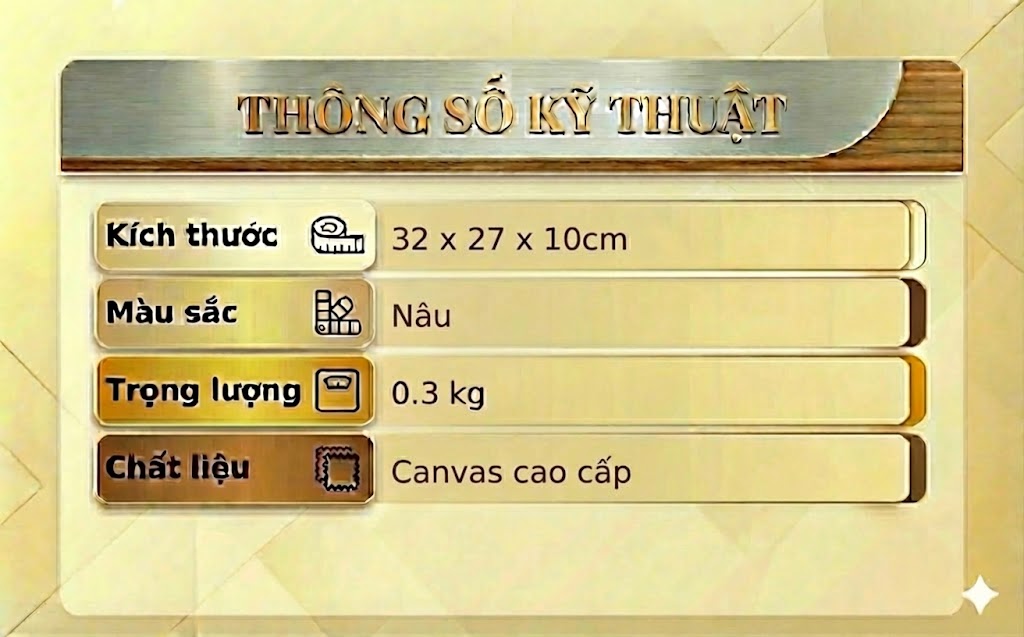 + Vải chính: Canvas cao cấp