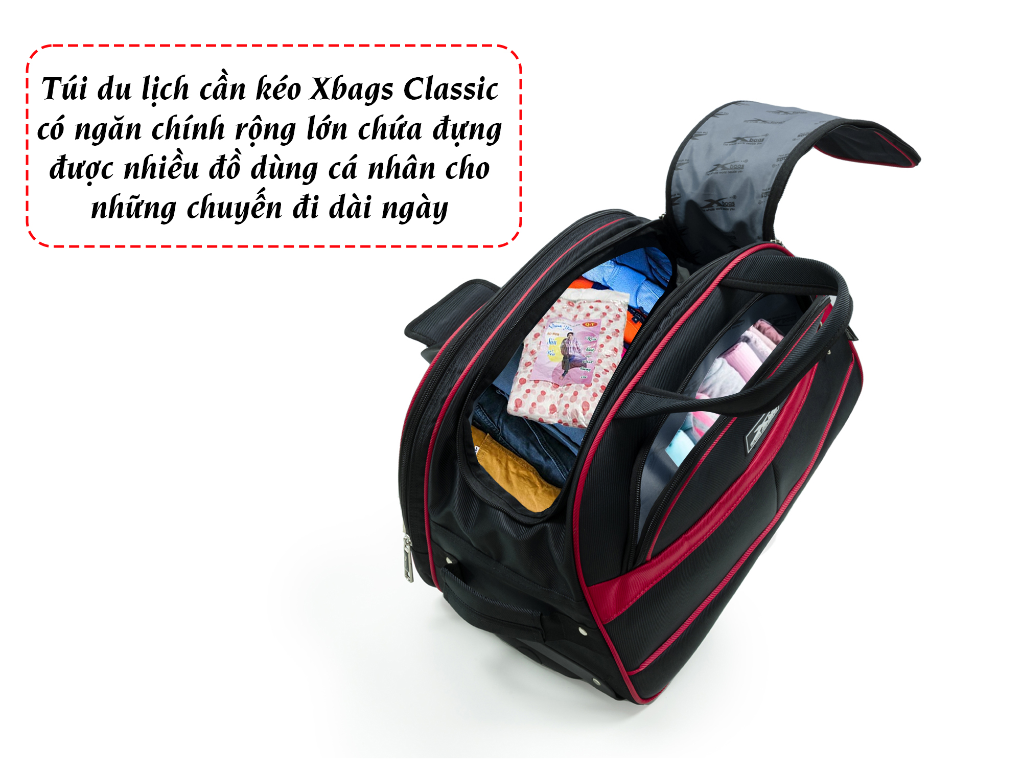 - Đa năng, tiện lợi: Túi xách du lịch cần kéo đa năng của tnshop.com.vn có thiết kế nhiều ngăn lớn nhỏ riêng biệt, đều được may chắc chắn, khóa kéo đầy đủ giúp bạn phân loại đồ dễ dàng.