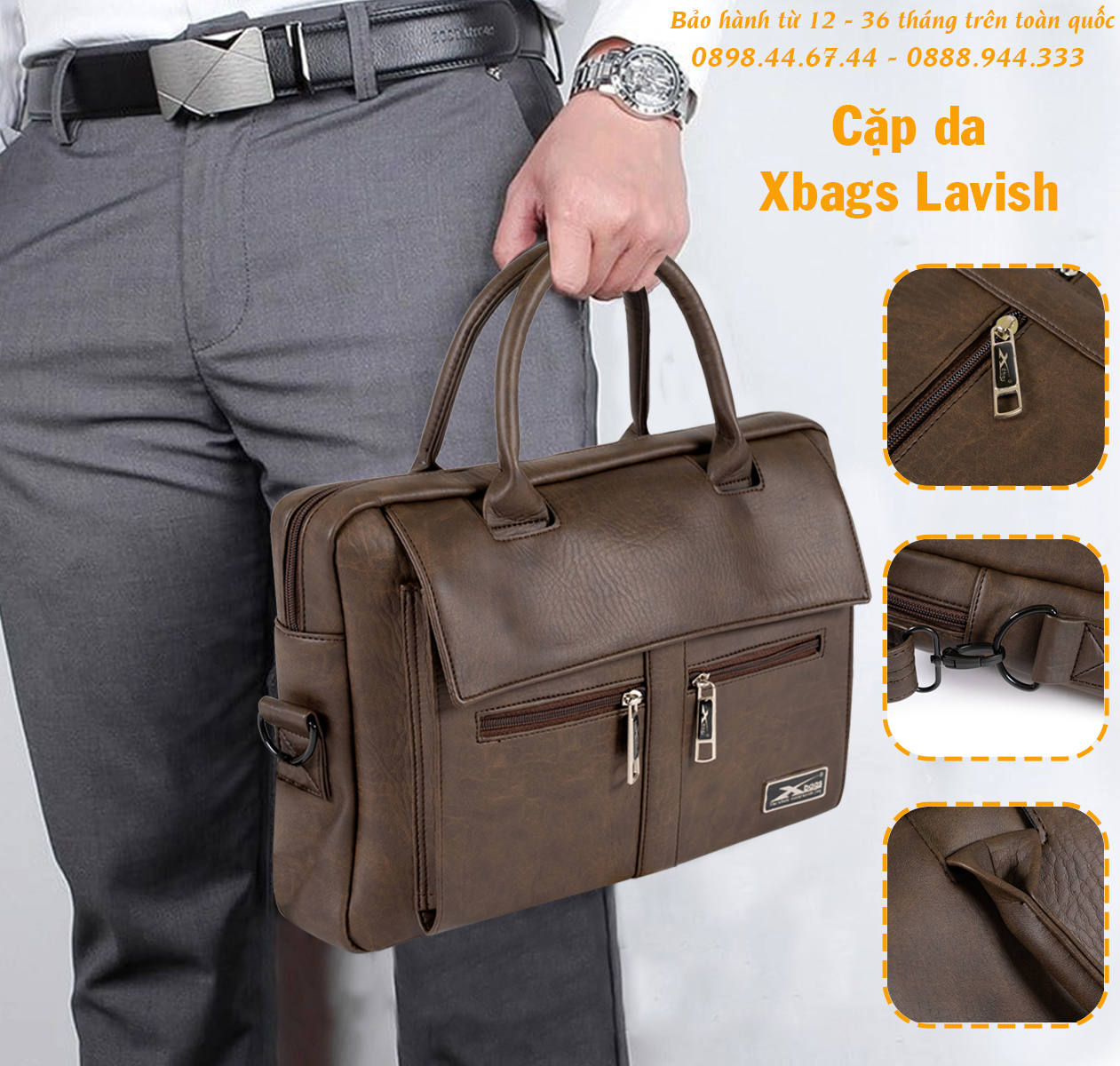Cặp công sở chất lượng tốt Xbags Lavish Xb 4301 sở hữu thiết kế hiện đại, sang trọng, chuyên nghiệp cùng gam màu nâu trung tính, mạnh mẽ, lịch lãm. Đường may sắc nét, tỉ mỉ, được kiểm tra kỹ lưỡng.