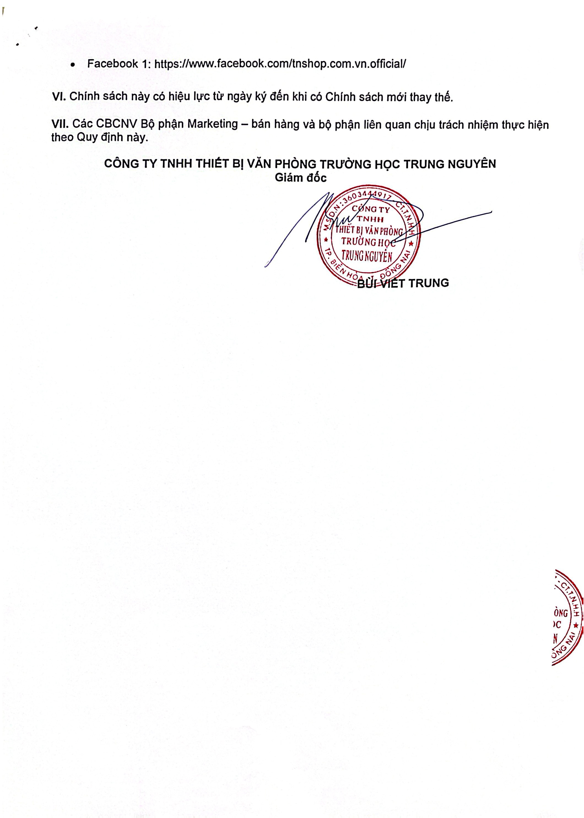 VI. Chính sách này có hiệu lực từ ngày ký đến khi có Chính sách mới thay thế.