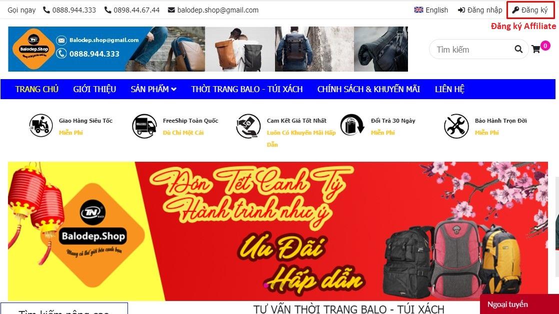 B1: Ở trang chủ website, chọn Đăng ký Affiliate