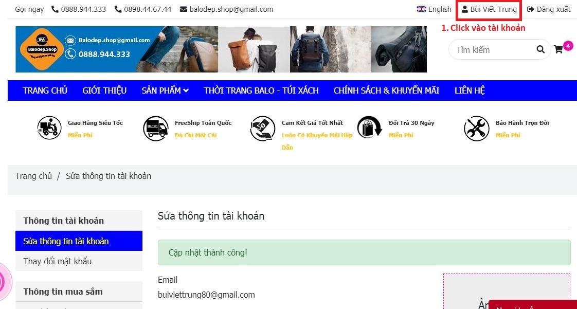 B1: Click vào tên tài khoản ở góc phải phía trên màn hình
