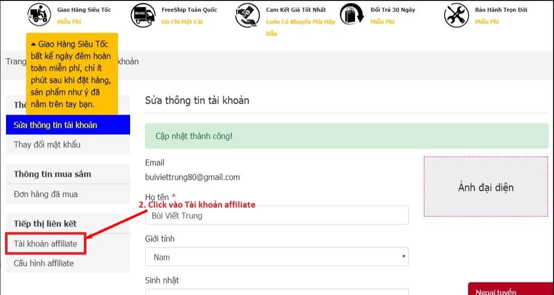 HƯỚNG DẪN ĐĂNG KÝ & HOẠT ĐỘNG TÀI KHOẢN AFFILIATE: