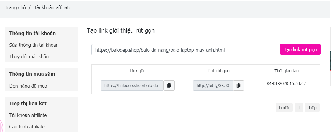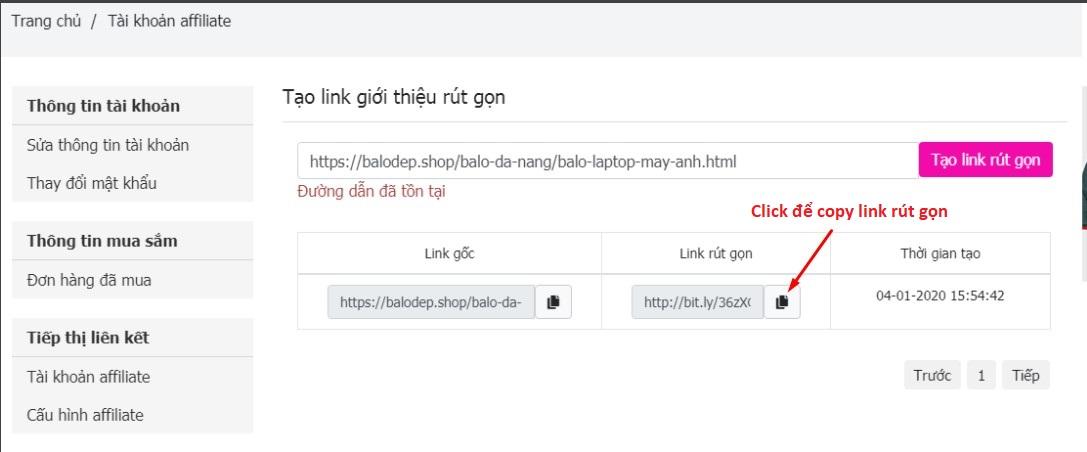 Để tạo link giới thiệu rút gọn hoặc link giới thiệu rút gọn cho từng sản phẩm mà người giới thiệu mong muốn, làm theo hướng dẫn như sau: