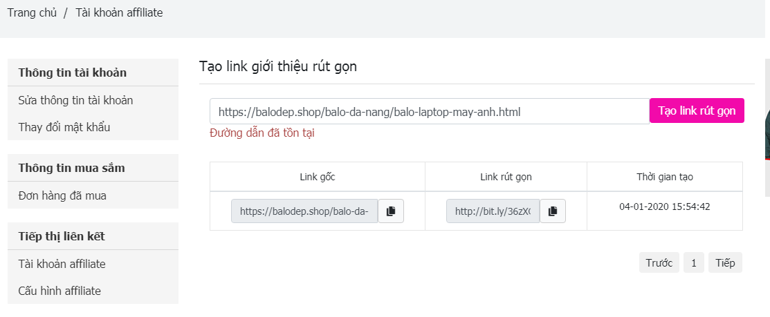 Làm theo các bước trên để tạo link rút gọn cho sản phẩm (hay nhóm/danh mục sản phẩm) bất kỳ nằm trong tên miền đang sử dụng để tạo đường dẫn rút gọn từ bit.ly.