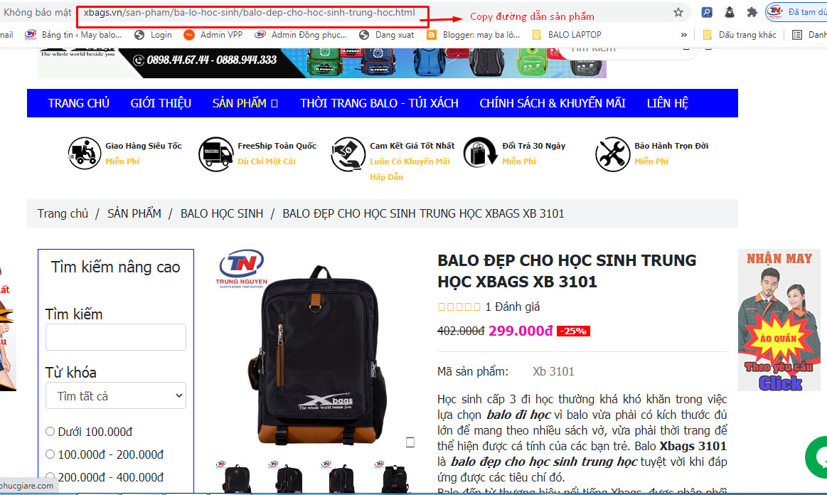 Bước 1: Tạo link giới thiệu rút gọn cho từng sản phẩm(hoặc danh mục sản phẩm) bằng cách copy đường dẫn của sản phẩm đó (hoặc đường dẫn danh mục sản phẩm đó):