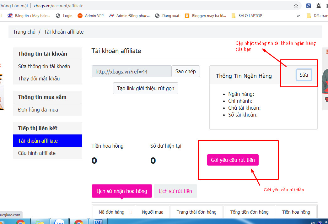 Sau khi đăng ký tài khoản Affiliate, khách hàng không thể sử dụng chức năng nhận hoa hồng ngay được. Để xem tài khoản, khách hàng cần:
