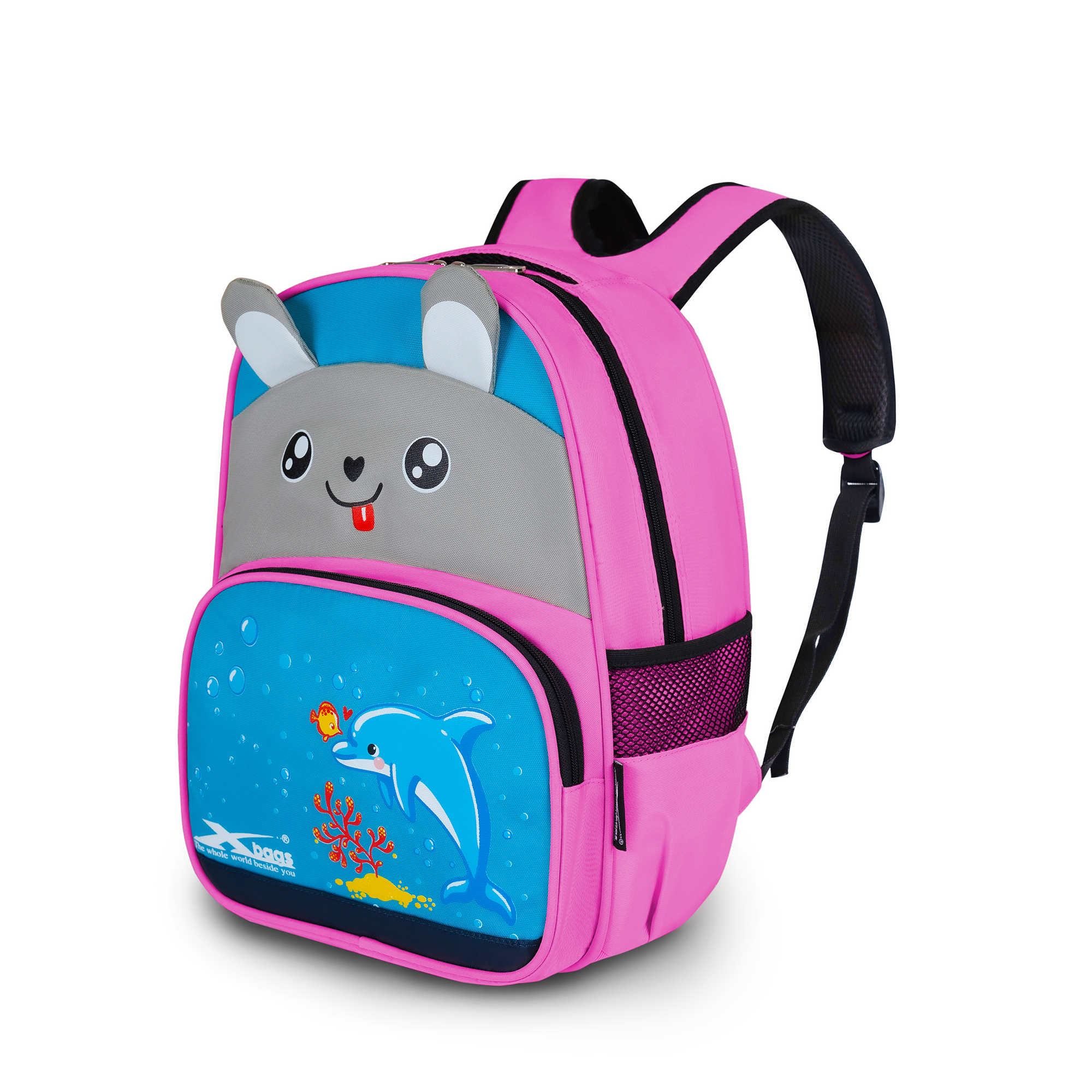 Ba lô dành cho bé gái cao cấp Xbags Dolphin Xb 3021 có ngăn chính to rộng, có trang bị ngăn nhỏ phía trong kết hợp các ngăn phụ nhỏ ở mặt trước và hai túi lưới bên hông giúp bé dễ dàng sắp xếp, lấy và tìm kiếm đồ đạc nhanh chóng.