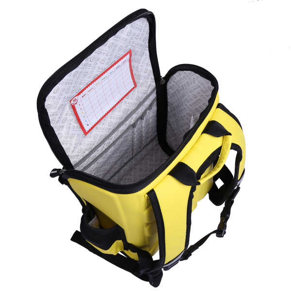 Ngoài ra, Sakos còn rất tinh ý trong việc tích hợp thời khóa biểu bên trong ngăn chính và bảng tên bên hông giúp bé dễ dàng nhận biết balo của mình cũng như quản lý thời gian cá nhân hiệu quả.