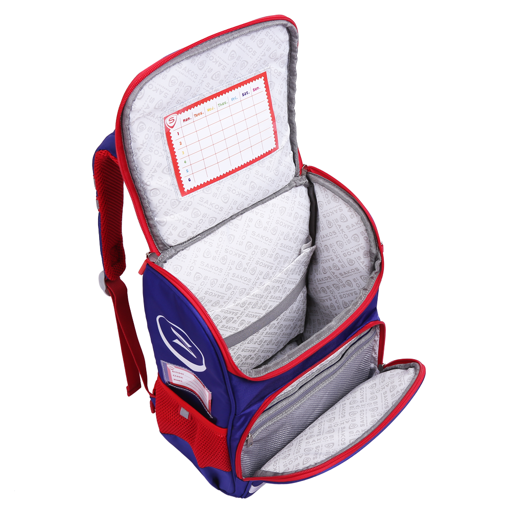 Bé dễ dàng kiểm soát thời gian và nhận ra balo của mình nhờ tích hợp thời khóa biểu bên trong và bảng tên bên ngoài.