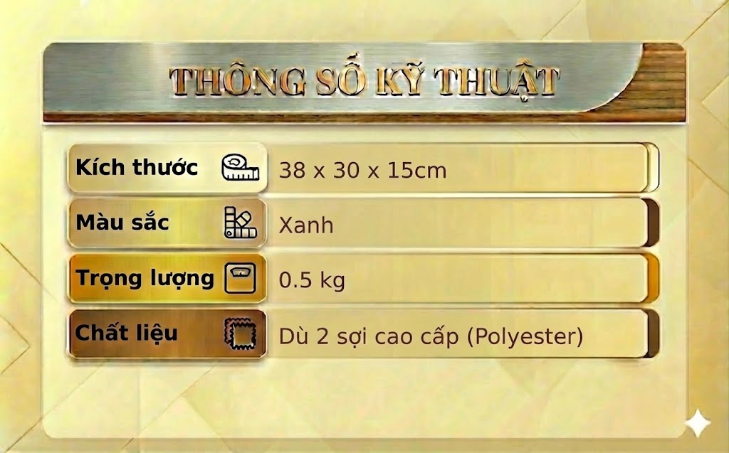 + Vải chính: Dù 2 sợi cao cấp (Polyester)