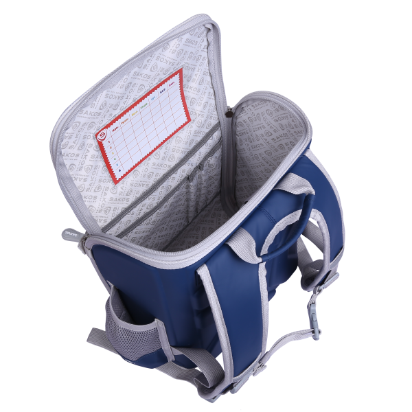Ngoài ra, Sakos còn rất tinh ý trong việc tích hợp thời khóa biểu bên trong ngăn chính và bảng tên bên hông giúp bé dễ dàng nhận biết balo của mình cũng như quản lý thời gian cá nhân hiệu quả.