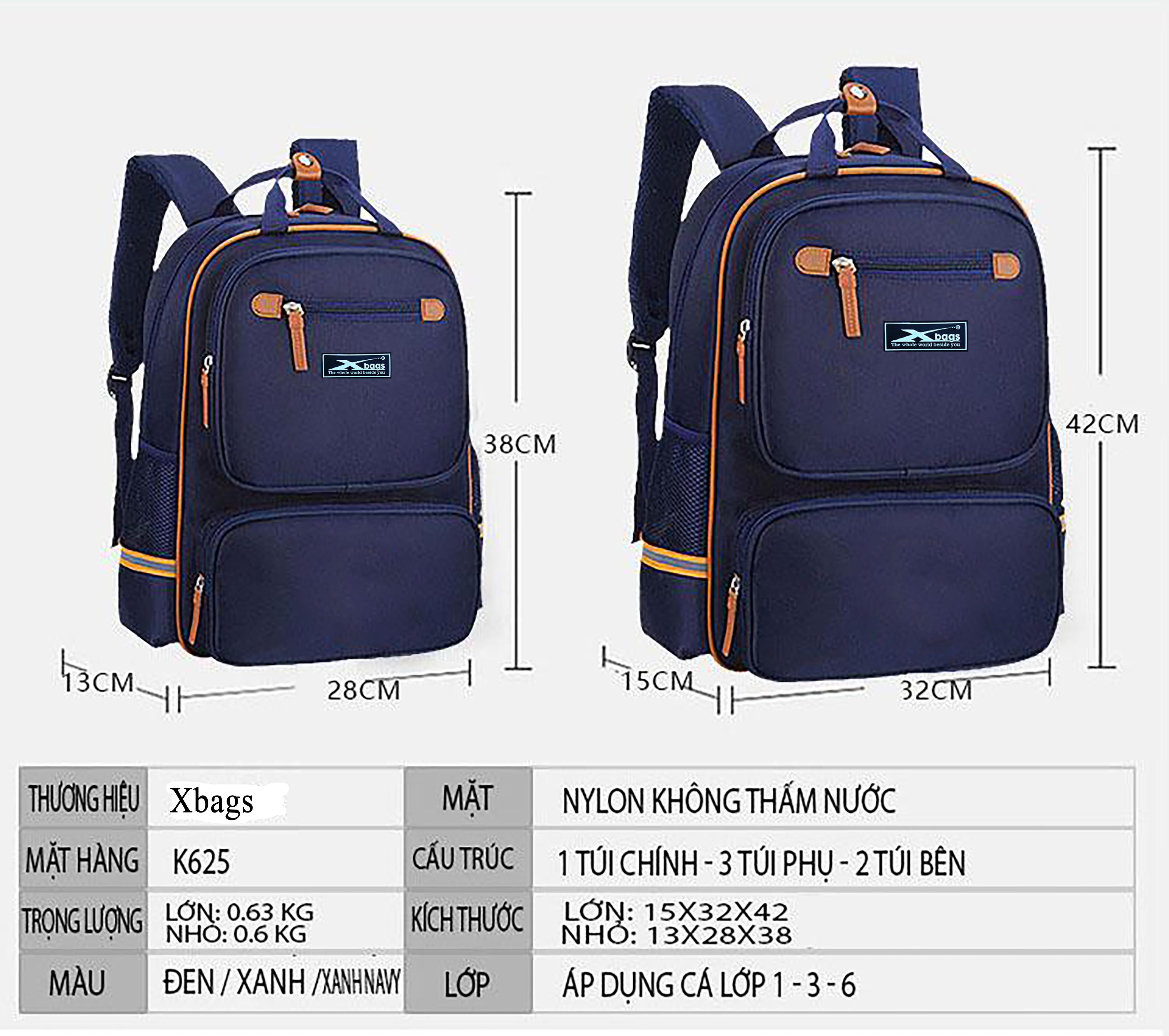 - Kích thước và Công dụng : ba lô học sinh cao cấp XBags được thiết kế siêu bền, có ngăn đựng laptop riêng chống sốc cực tốt. ba lô học sinh cao cấp XBags này dùng để đi làm, đi công tác, đi chơi, du lịch, phượt cùng cá nhân, bạn bè, gia đình.