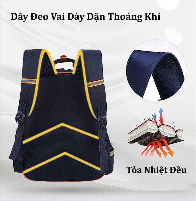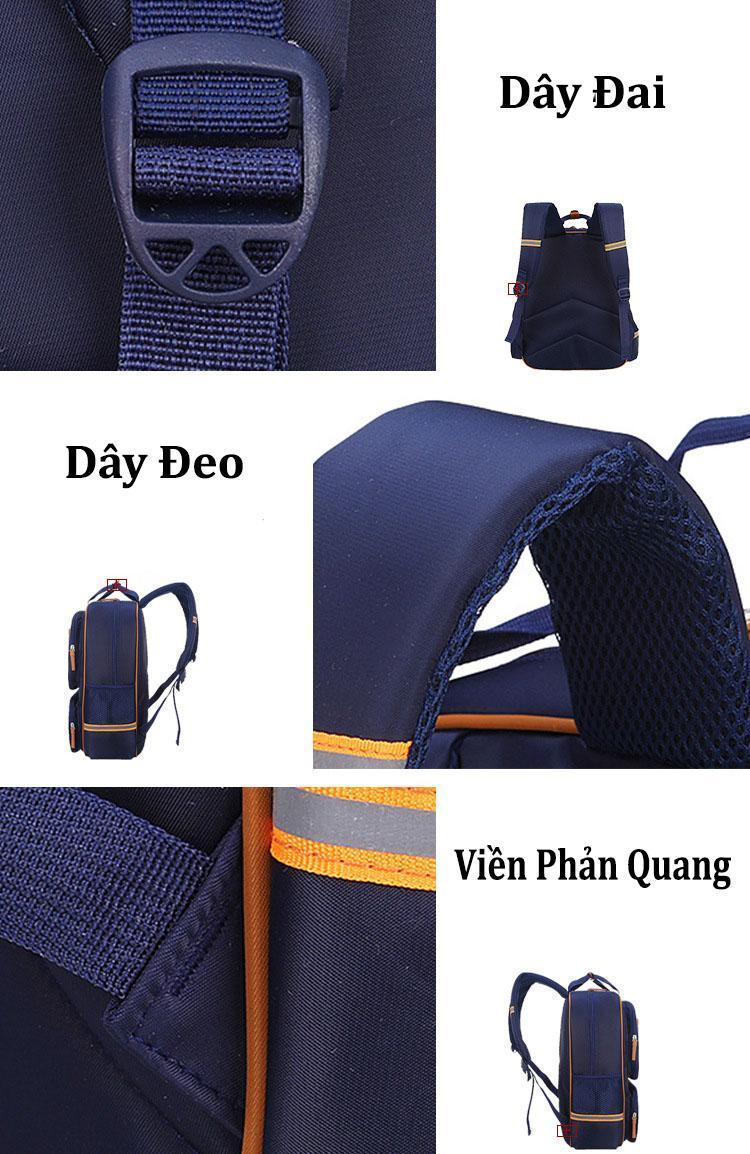 Quai xách: ba lô học sinh cao cấp này có Quai xách được may rất chắc chắn, có lớp đệm bảo vệ tay.