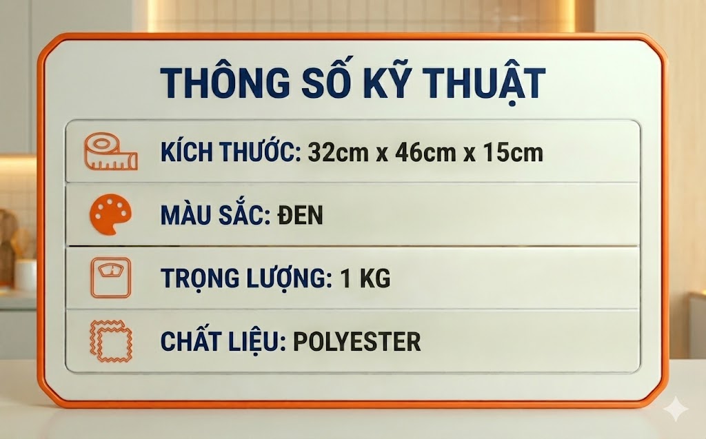 Sản phẩm có kích thước 32 x 46 x 15cm, có sự phân bố ngăn đựng khoa học, nhiều ngăn kết hợp rất tiện lợi. Bạn có thể sắp xếp đồ đạc gọn gàng, ngăn nắp và dễ tìm kiếm.