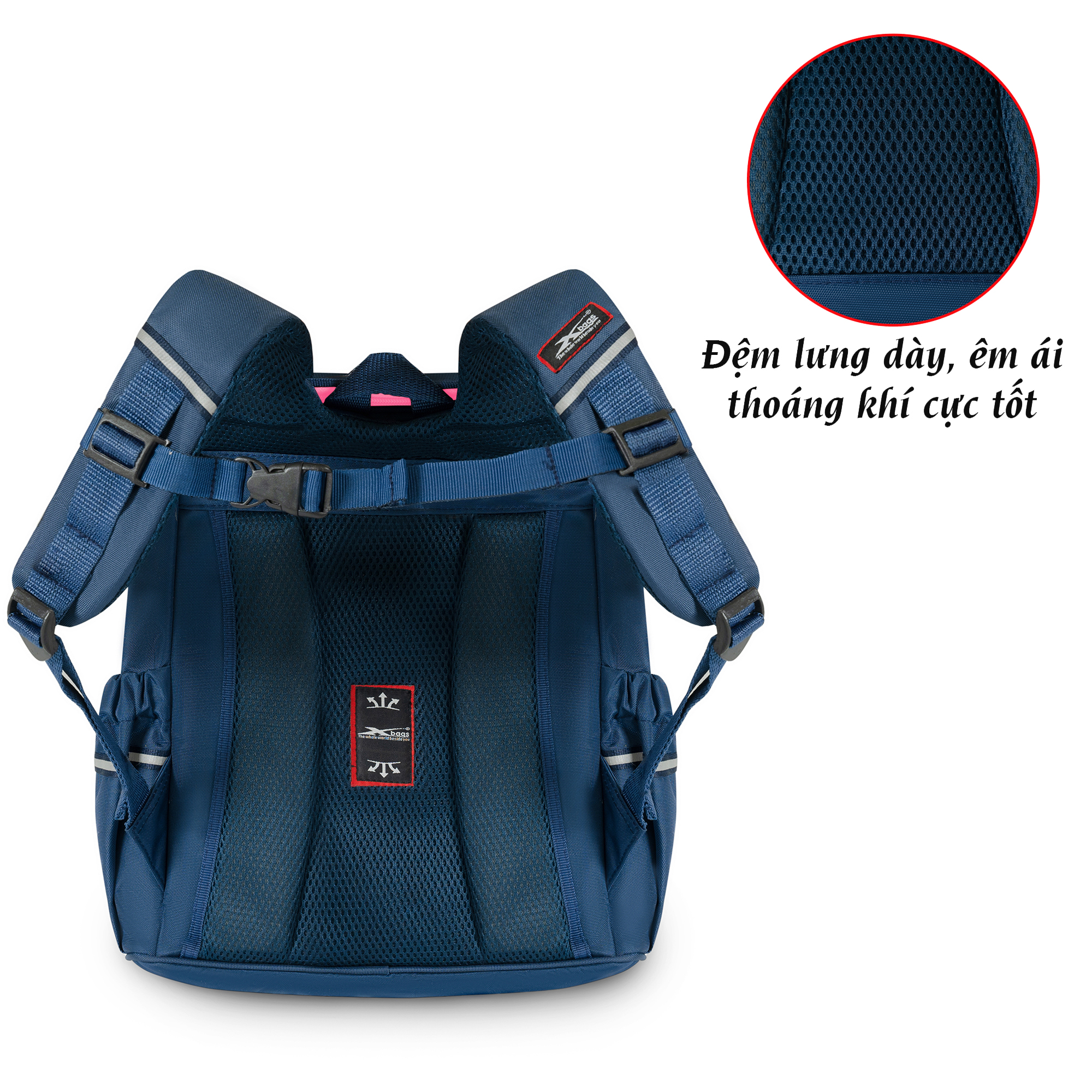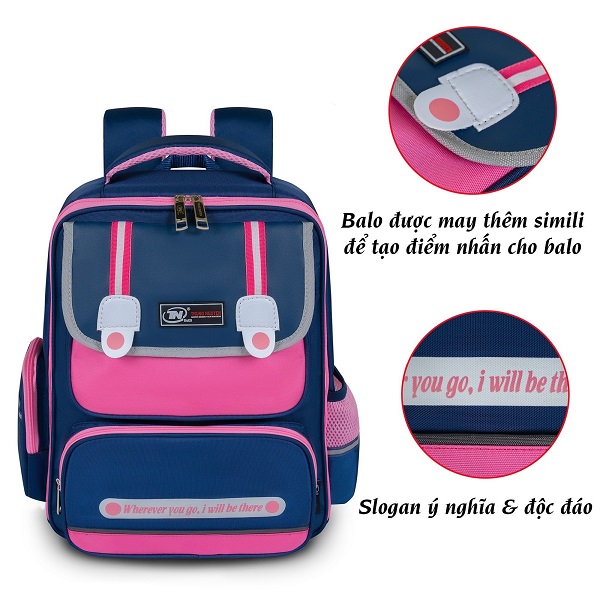 Có thiết kế tinh tế với miếng đệm giúp chống gù lưng là đặc điểm nổi bật của balo học sinh này. Màu sắc bắt mắt, trọng lượng nhẹ. Balo có ngăn rộng rãi và nhiều ngăn phụ tiện lợi tăng hiệu quả học tập và hoạt động cho bé.